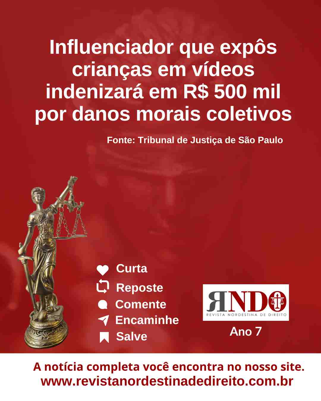A 1ª Vara da Infância e da Juventude de Sorocaba condenou influenciador digital e plataformas digitais ao pagamento de indenização de R$ 500 mil reais por danos morais coletivos após publicação de vídeos expondo crianças e adolescentes em situações de vulnerabilidade social e trabalho infantil. O montante será revertido ao Fundo Estadual dos Direitos da Criança e do Adolescente. Além disso, o requerido não poderá mais produzir conteúdo que exponha imagem, voz ou história dos jovens e deverá restituir integralmente os valores auferidos com as publicações, o que totaliza cerca de R$ 950 mil. Já as plataformas deverão indisponibilizar os conteúdos já publicados.