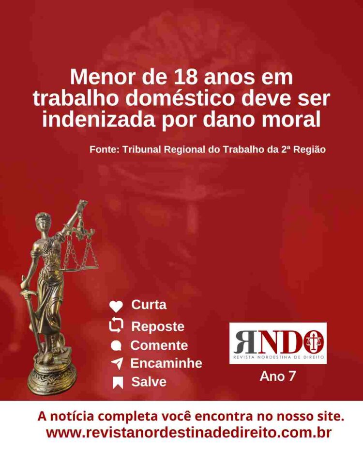 A 1ª Turma do TRT da 2ª Região modificou sentença e condenou empregadora a indenizar por dano moral trabalhadora admitida como babá quando ainda era menor de idade. No acórdão, o colegiado pontuou que a legislação brasileira proíbe a contratação de menores de 18 anos para o trabalho doméstico.